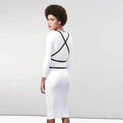 Cette culotte habille la peau d’une maille opaque et d’une dentelle graphique transparente. Son jeu de matière apporte une un effet structuré sur l’avant, soulignant les hanches. Les dos est encore plus dévoilé avec sa découpe sensuelle. Un bijou chaînette doré vient se loger au creux des reins et invite le regard.