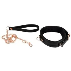 Choker Avec Laisse En Cuir DoublĂ© Fourrure – Noir Et Or Rose