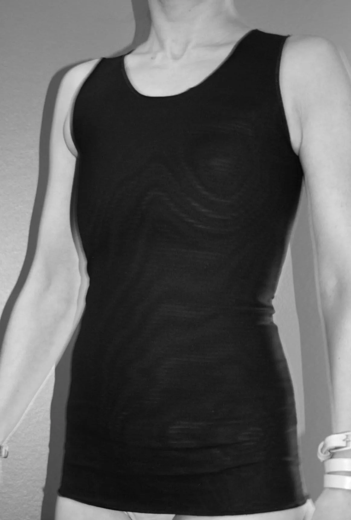 Ce T-shirt permet de dissimuler au mieux le volume de la poitrine par compression.