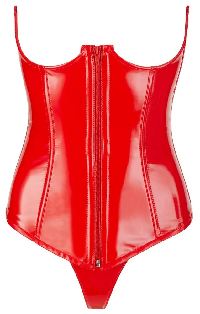 Pour une parure fetish complète, portez-le avec des nippies, une jupe et des gants en vinyle.