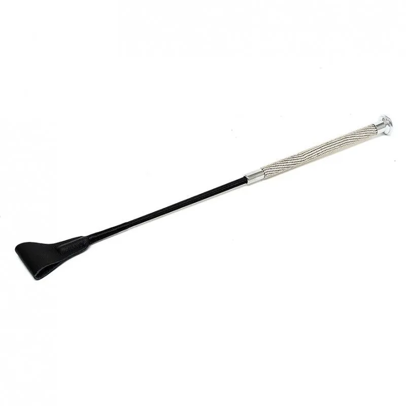 Cette cravache courte est assez rigide, et son manche est entièrement décoré de strass.