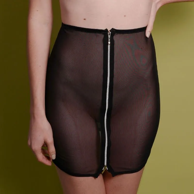 A porter dans un sens ou dans l’autre, ouverte ou non, cette jupe sublimera un corps nu ou un ensemble de lingerie.