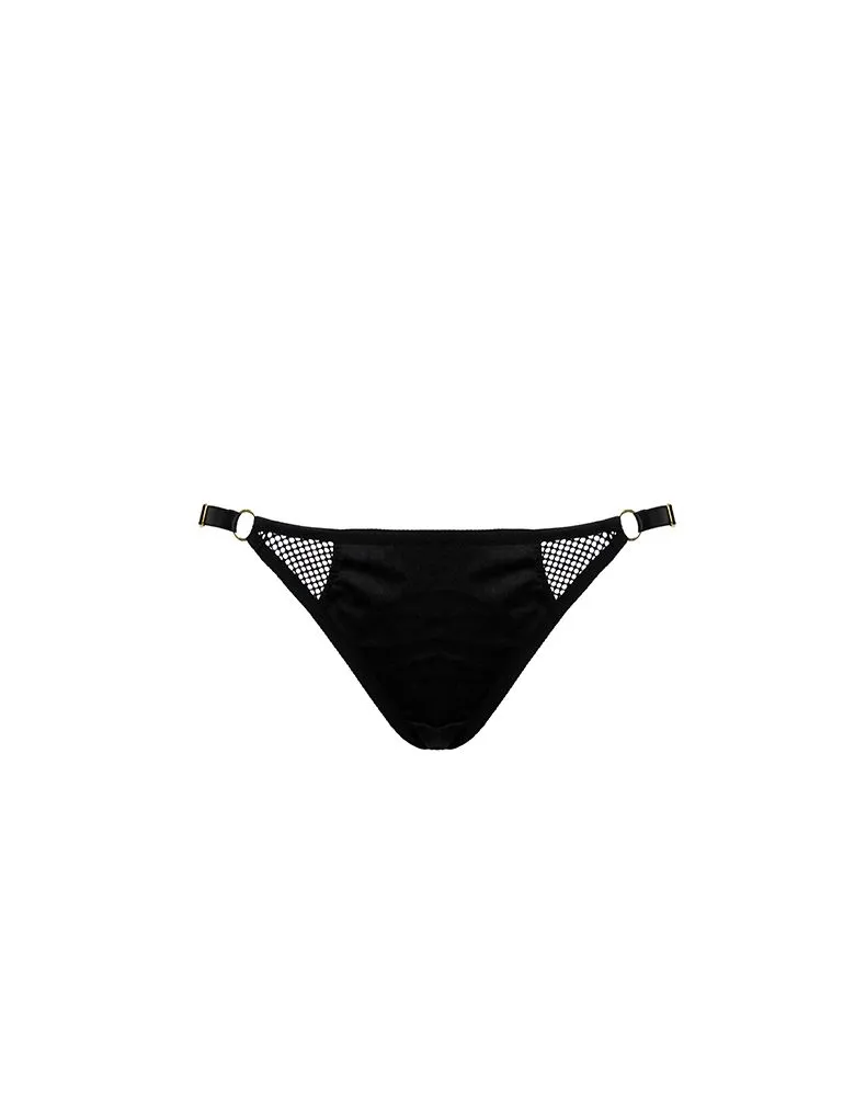 Deux lanières fines marquent les hanches et se règlent grâce à des attaches plaquées or 24 carats.