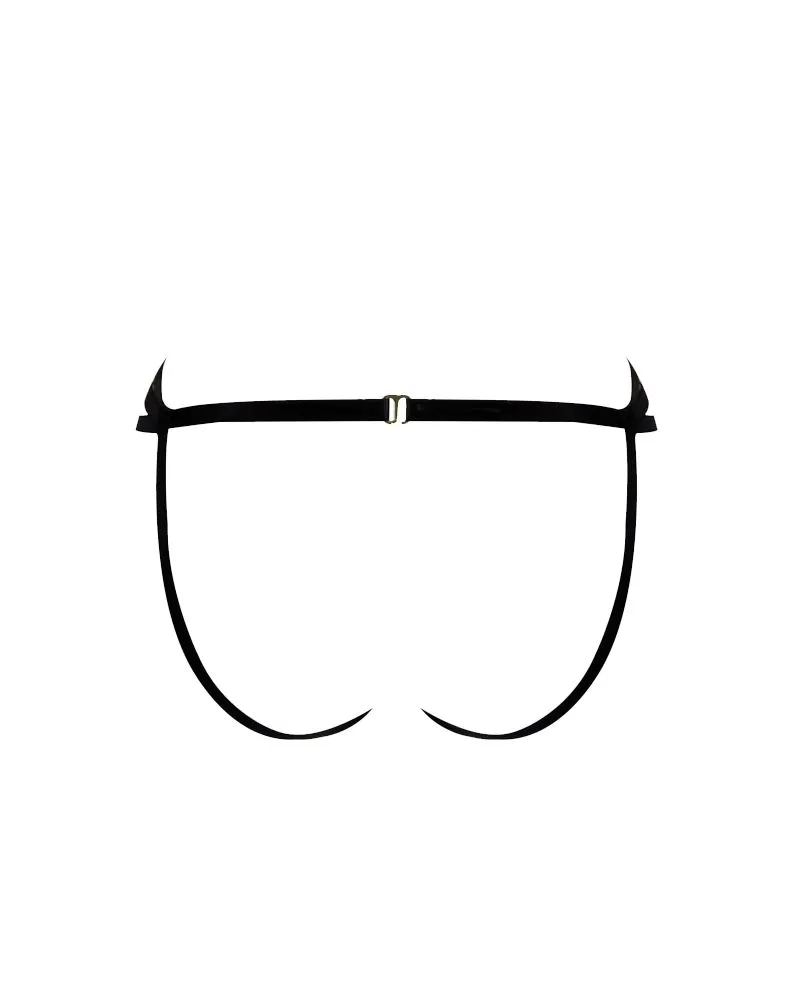 La culotte ouverte bondage marque avec sensualité les courbes du corps.