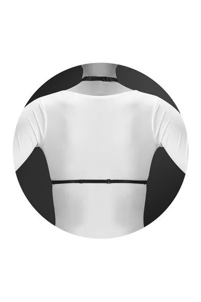 Ce harnais sublime la poitrine et invite le regard ! Son fin anneau en acier fait l’effet d’un bijou et magnifie le cou. Le fin anneau argenté fait un effet bijou et habille joliment les parures de lingerie et les tenues décolletées. Le harnais peut se porter à même la peau, comme pièce de lingerie à part entière ou par dessus un body pour accessoiriser une lingerie plus classique. Il peut également se porter sous un top décoleté ou transparent. Pour le nettoyage, il suffit de laisser tremper le harnais quelques minutes dans de l’eau tiède avec une petite quantité de lessive douce, avant de frotter délicatement et de rincer abondamment.