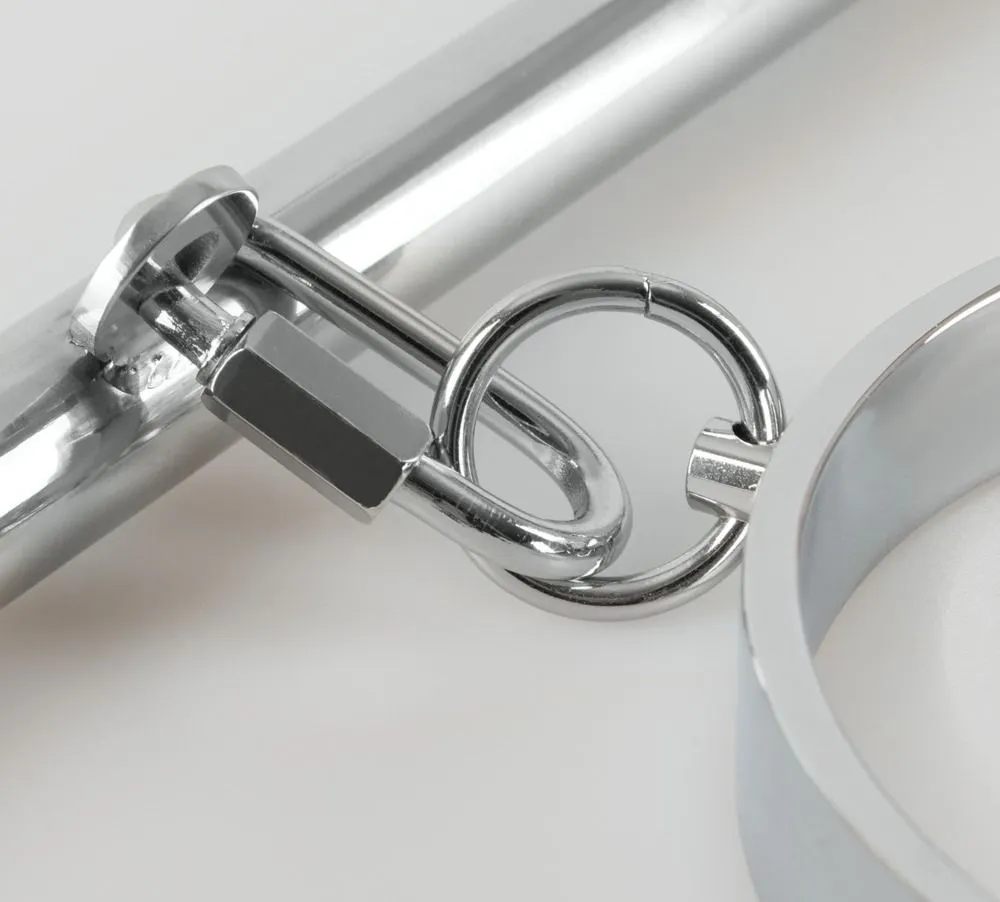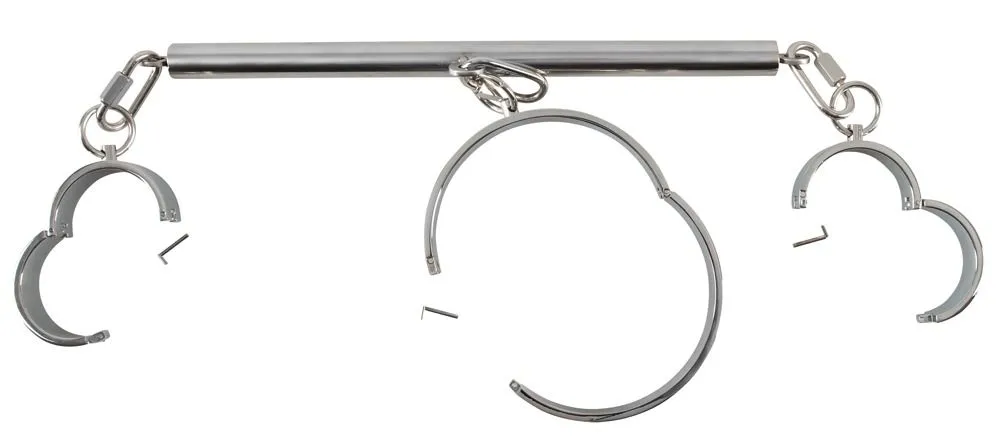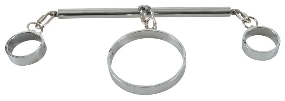 Le collier et les menottes sont reliés par une barre d’écartement.