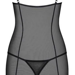 Sa coupe courte et près du corps sublime la silhouette. Une dentelle fine met en avant le décolleté et habille les fesses. Les bonnets sont armaturés pour apporter du maintien à la poitrine. Son tulle transparent dévoile la peau tandis que ses coutures opaques marquent la taille et longent les lignes. Ses bretelles fines et réglables permettent de l’ajuster au mieux à votre morphologie.