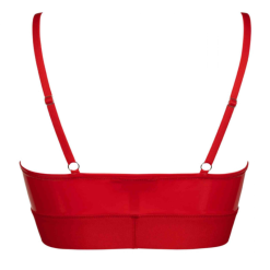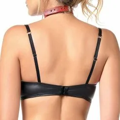 Ce haut allie la douceur de la résille transparente et le piquant du vinyle. Son tissu fin et transparent dévoile la peau et se pose sur les courbes tout en délicatesse. Les coutures sont mises en lumières par des détails en vinyle qui cassent l’effet sage apporté par son voile doux en premier abord. Son col montant dégage les épaules. Les bras sont habillés de manches à volants. Sa coupe courte et moulante marque la taille et sublime toutes les formes et tailles de poitrine. Décliné en différentes taille, ce top est pensé pour convenir à toutes les morphologies.