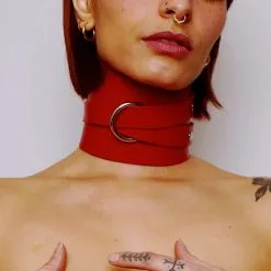 The Sinners Choker En Cuir Ă Pics Avec Mousqueton – Rouge
