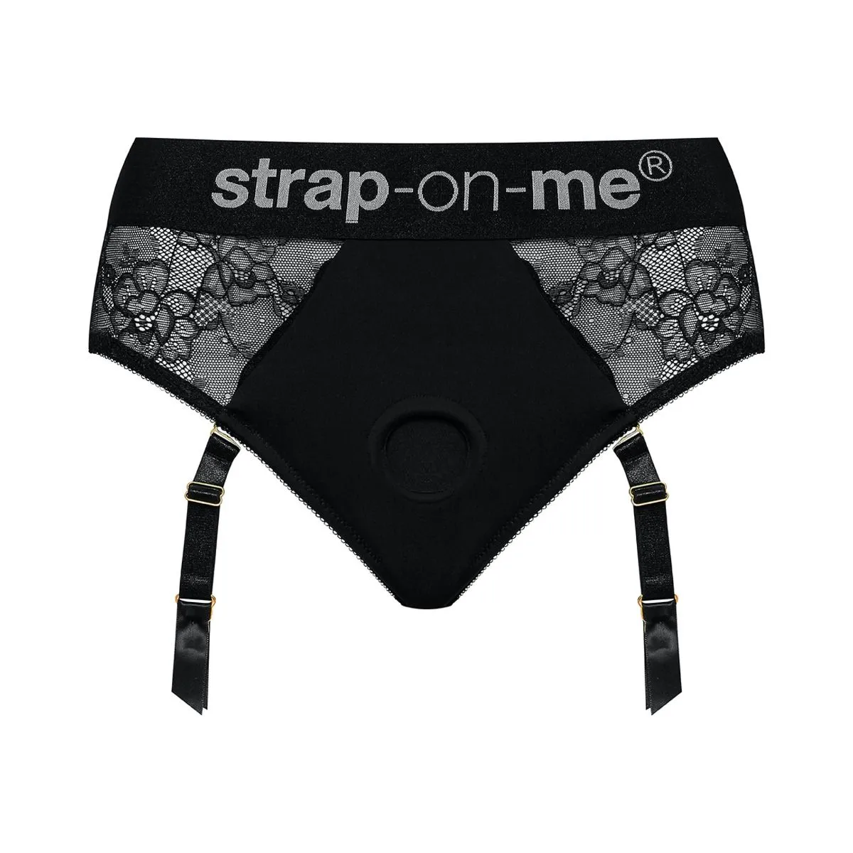 Sous forme de boxer, il est agrémenté de dentelle et de porte-jarretelles, sans oublier sa très jolie ouverture sur les fesses.