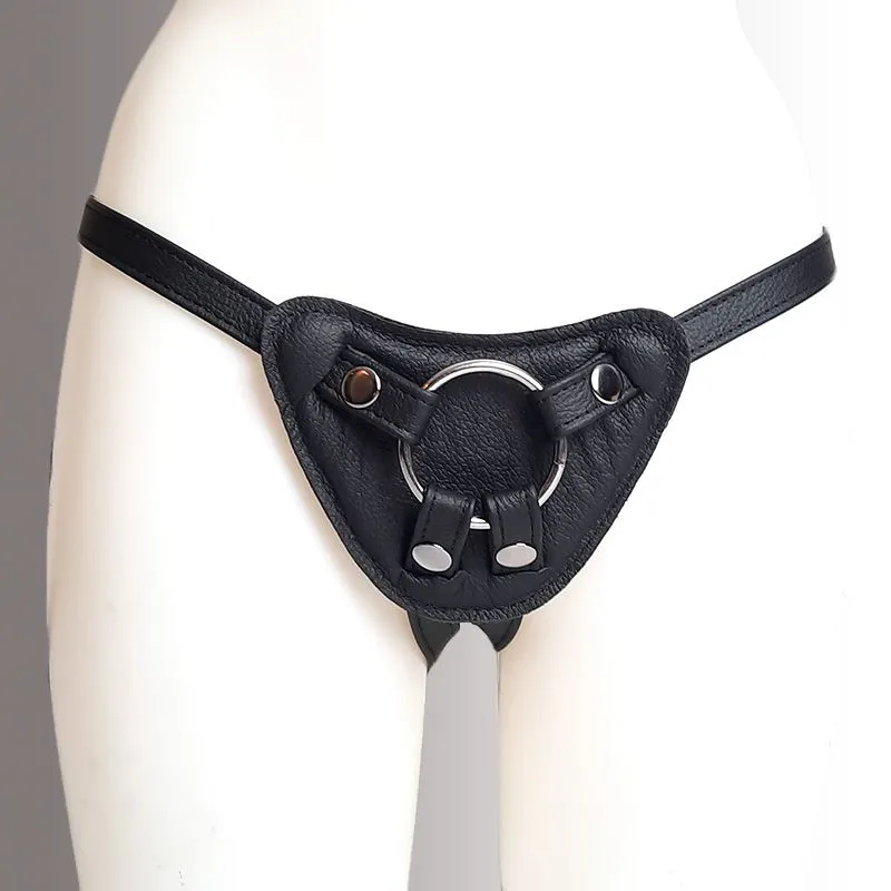 Les lanières se rejoignent sur le plastron central autour d’un anneau en acier. C’est sous celui-ci que l’on glisse le dildo que l’on souhaite utiliser. Ce modèle de harnais est fourni avec 3 anneaux en acier. Déclinés en 3 tailles, il permettent d’utiliser des dildos de tailles différentes. Faciles à détacher grâce aux pressions en acier, pas besoin de retirer le harnais pour changer de jouet.